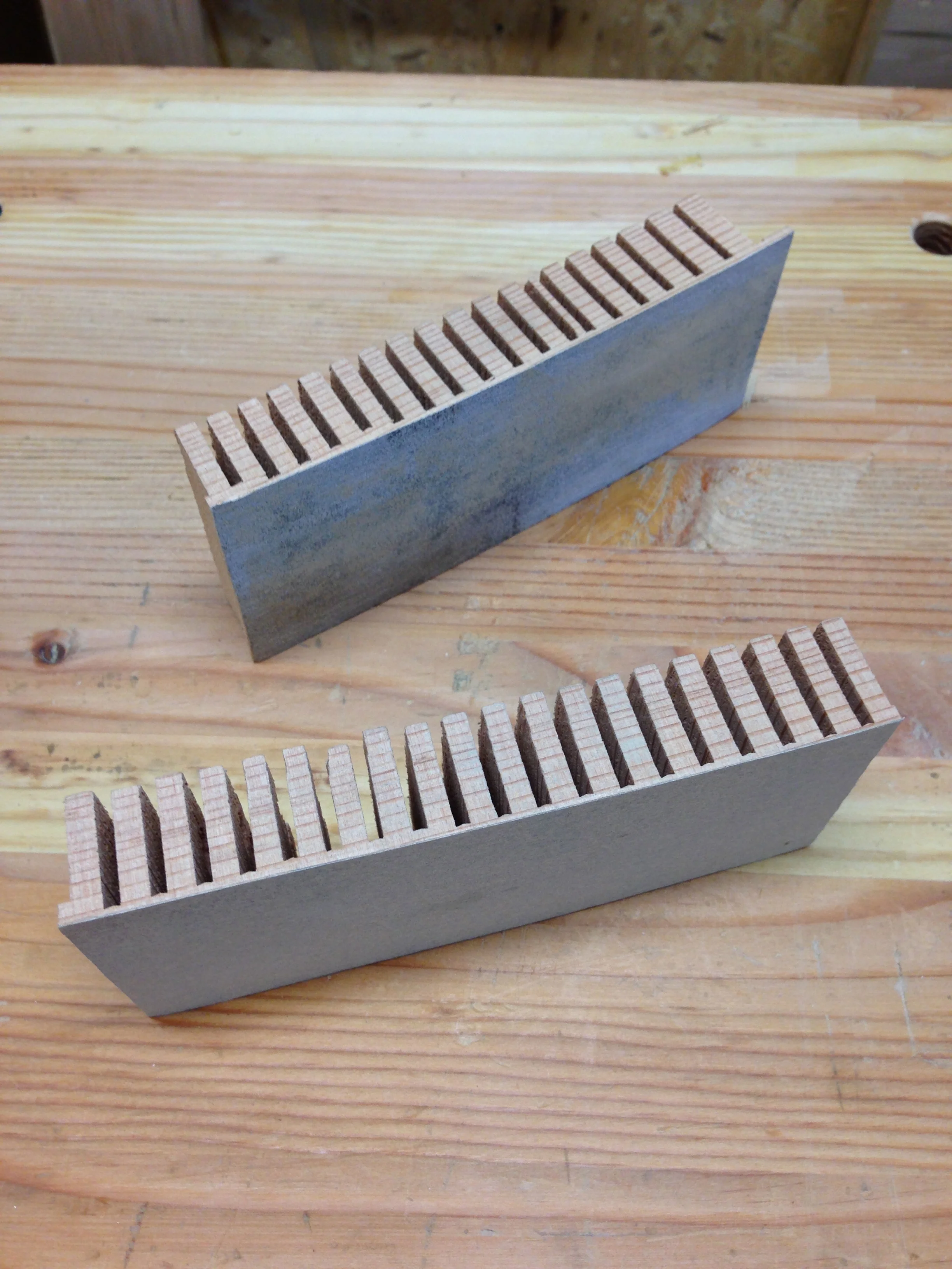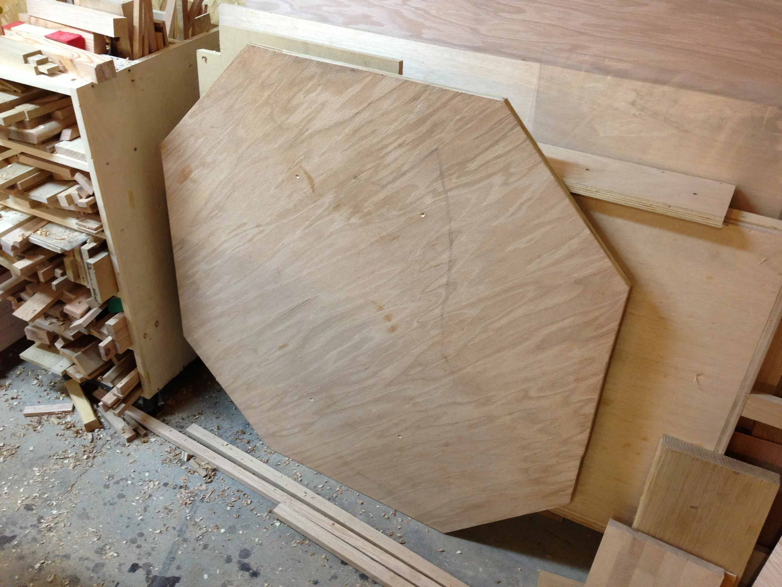 I am nearing completion of a mission style pedestal kitchen table (which I am documenting step-by-step here), and as I was tidying up the shop, preparing for doing the finishing, i came across all the jigs, plans, and other items I made in order to make the table. They'll make a little more sense when you see the whole table, but for now, here's some of the behind the scenes building and making required, beyond just cutting the project wood...