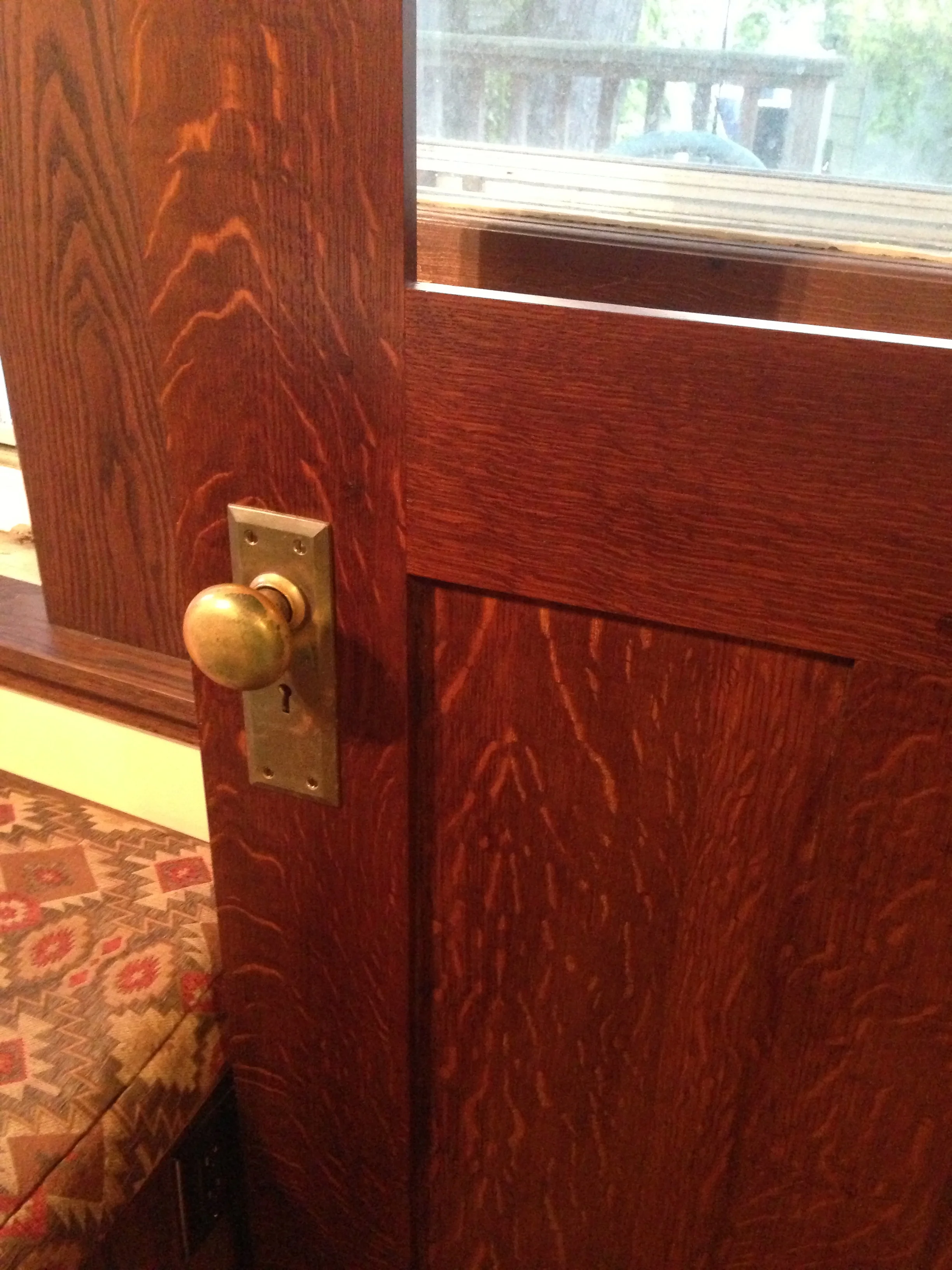 As the job required re-building the entire jamb, I had to mortise in the strike plate. But I din't have the original strike for that handle/lock set. I bought a brass strike at the big box store that was close enough in size, and that only required widening the main opening about 3/8" on each side of the existing strike opening -- easily accomplished with a hacksaw blade and mill file. I then mortised in the strike, tested for fit, and it operated like a dream. This is really "THE moment of truth" for a door project, because if the door doesn't close right or is somehow goofy, it will forever bee annoying.