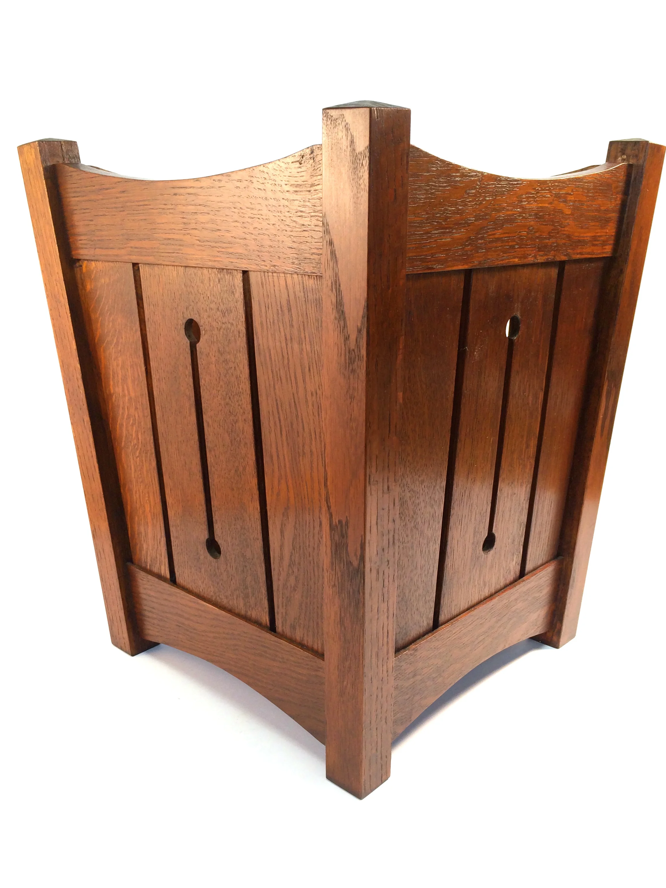 That was me a while ago with some red & white oak. Too good to toss, and it was overflowing my system. Around that time, I happened upon an image online of a great craftsman style wastepaper basket. As I looked at it, peaking around the corner of my desk, just in the corner of my eye, was an ugly grey plastic Office Depot garbage can that sits in my office, and another one around the corner in my kitchen...