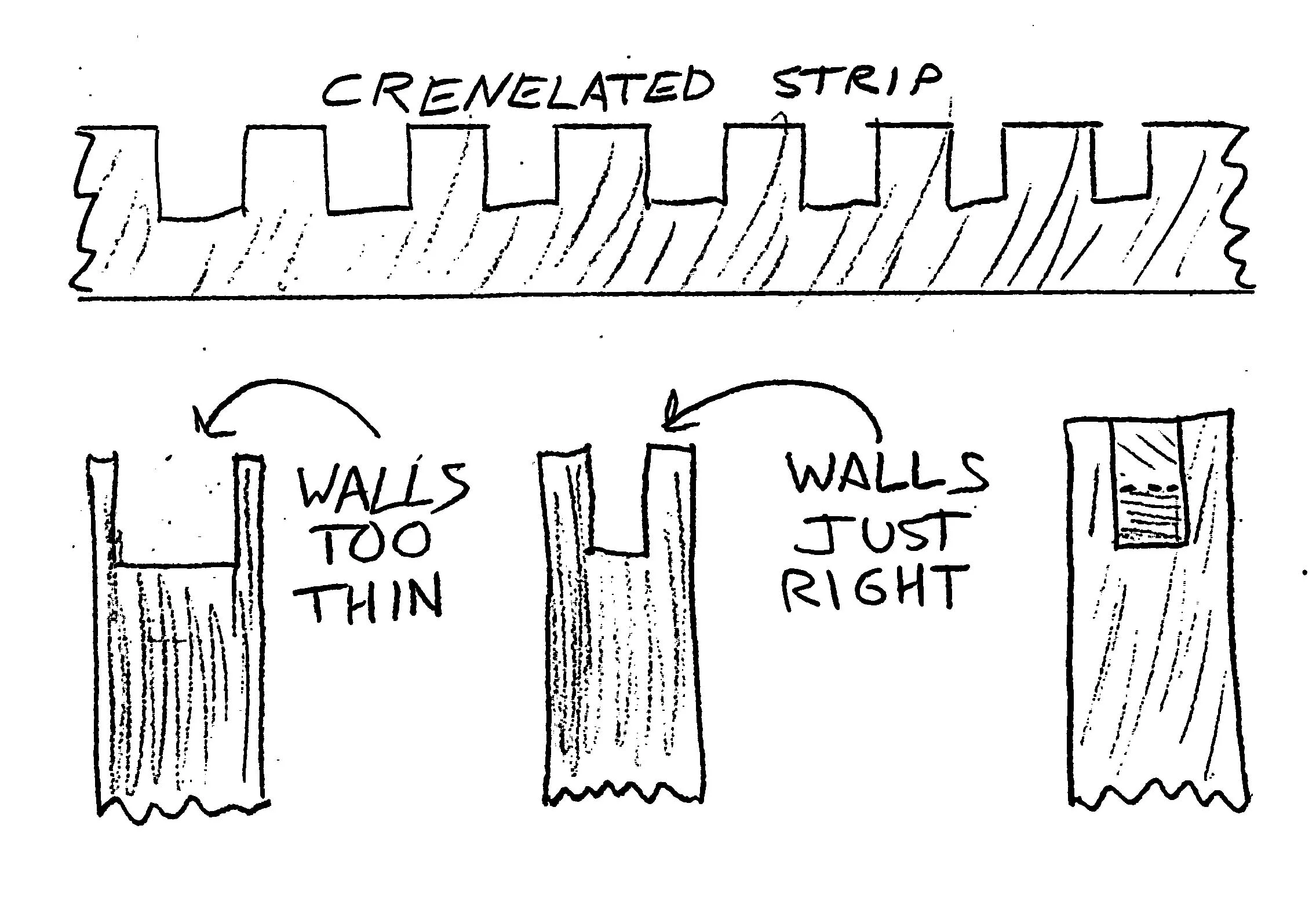I made the crenellated strips, cut the dados in the rails, and glued that together, taking care not to fill up the little mortises with glue. I only had to dig glue out of a few of the 206 mortises. I did a full dry fit of each of the two sides and the back, for each piece. This process made sure I discovered any malformed mortises or tenons, or any part that wasn't fitting, well before I would be doing final assembly. For the final assembly, the tenons would be going into the mortises dry, with no glue. Gluing them would have been tedious, and would have caused lots of squeeze out that would have required meticulous clean-up. The glue wasn't going to be adding anything in the way of strength on such tiny glue surfaces. The dry fit showed the spindles to be nicely snug in their mortises, and my fear that they would end up loose was assuaged.