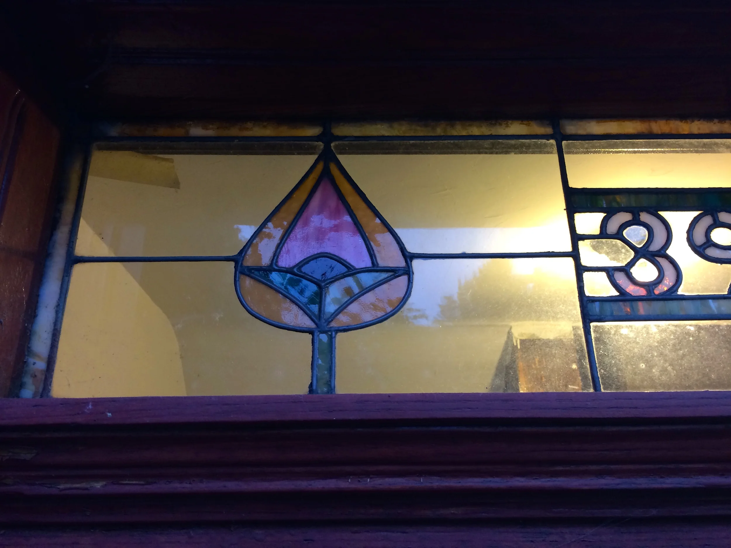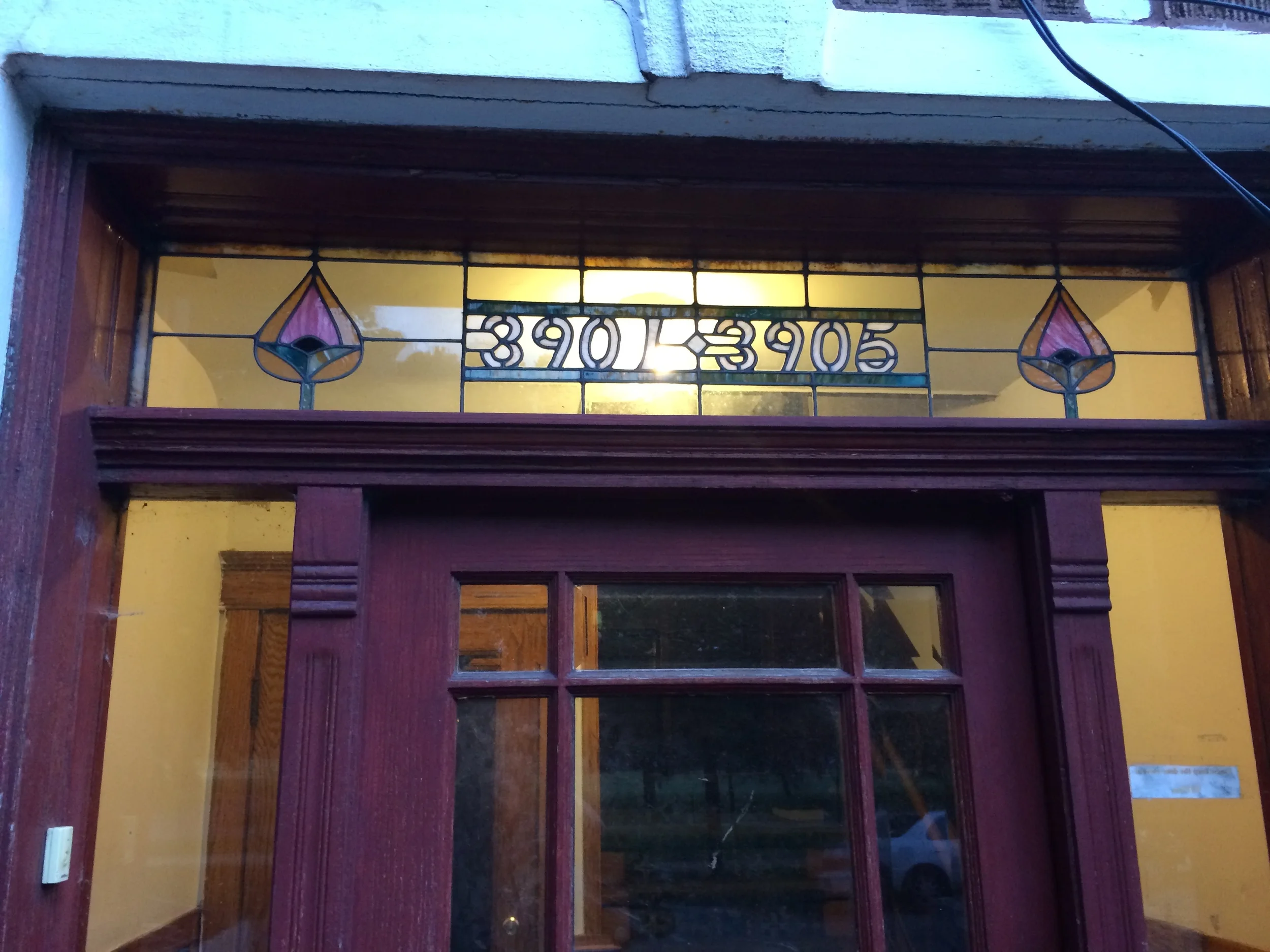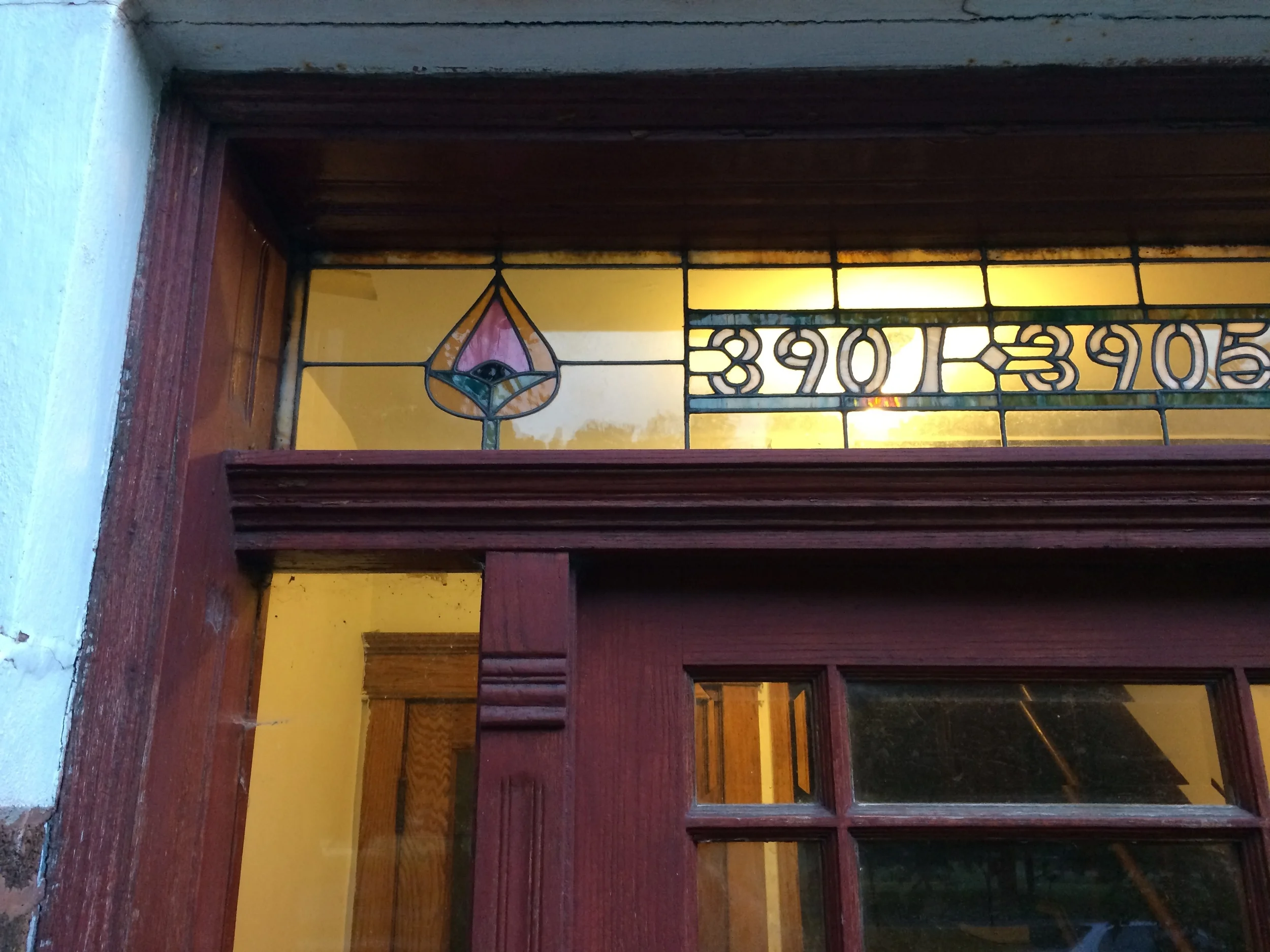 Chicago has a long history with Arts & Crafts / Mission / Prairie / Craftsman styles in buildings great and small. Of course there is the quintessential Chicago bungalow, but other building styles tended to follow that general aesthetic, to greater or lesser degrees, during the 1900-1930s. Many brick "2-flat" or "3-flat" apartment buildings were built in that period, and they usually featured some art glass in the entryway, or above the mantle piece/fireplace, or in the side vestibule. I always look for these to see if someone has "gotten it" and kept them intact, or, sadly (and tragically frequently) knocked them out, or boarded them up/over.
